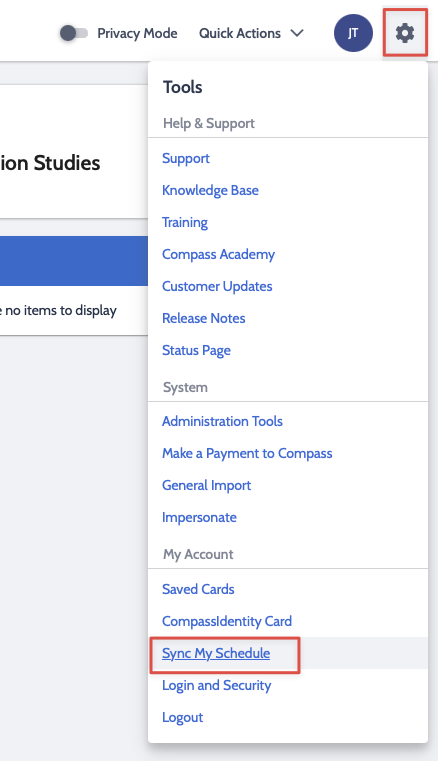 Log into Compass, click on the gear in the top right corner and click Sync My Schedule