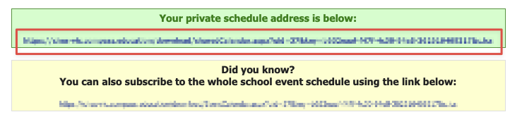 Scroll down and click on the link in the green Private Schedule box. This will download a file to your computer