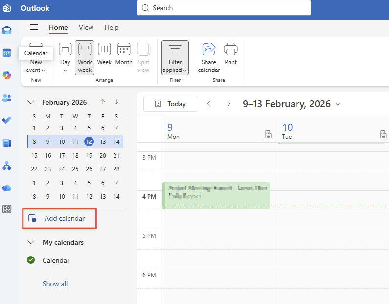 Open Outlook and click on the Calendar icon