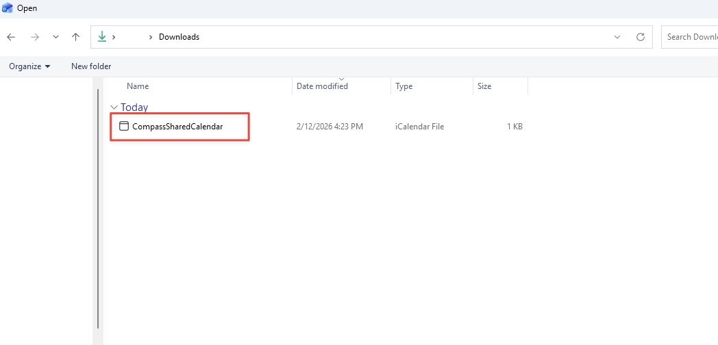 Go to your Downloads folder and select the 'CompassSharedCalendar' file that was just downloaded